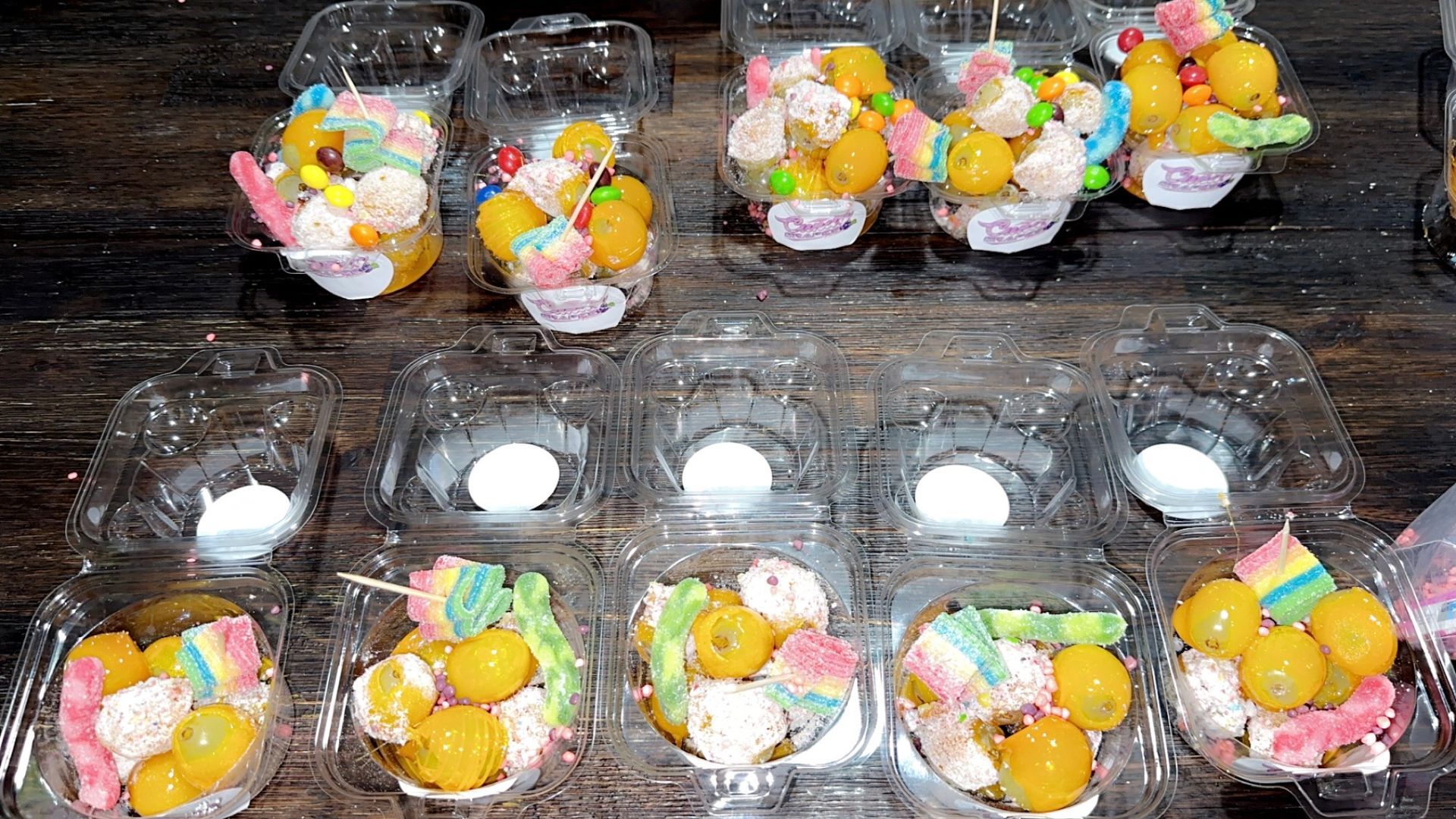 Indulge your sweet tooth with our candy-coated grape desserts. These delightful treats are the perfect way to end your meal, combining the freshness of fruit with a sugary twist.